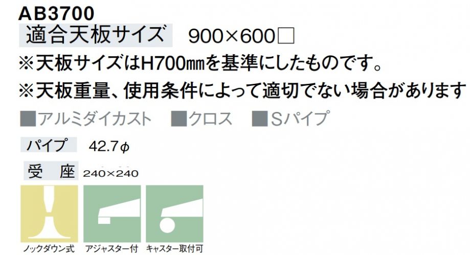 AB3700 ミガキ、パイプ塗装 適応天板 900× 600