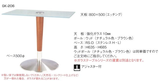 GRー206エッジングガラステーブル 脚部付き 高さ2種類 木部色2色