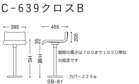 Cー639クロスB オートリターン 張地Aの価格 脚部高さ700まで指定