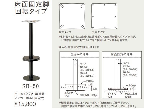 SBー50 床固定椅子用脚部 回転タイプ 黒塗装