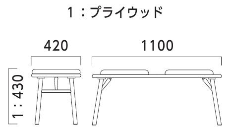 アマレ SN 1 背なし1人掛 プライウッド 木部色2色より選択