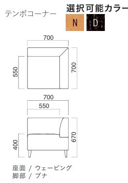 テンポコーナー 脚部木部色2色 張地Aランクの価格