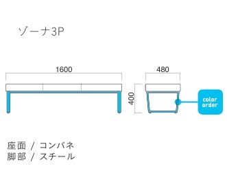 ゾーナ 3P W1600 脚部塗装色11色より選択 張地ランクAにての価格