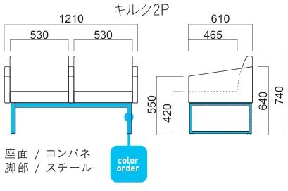キルク 2P W1210 脚部塗装色11色より選択 張地ランクAにての価格