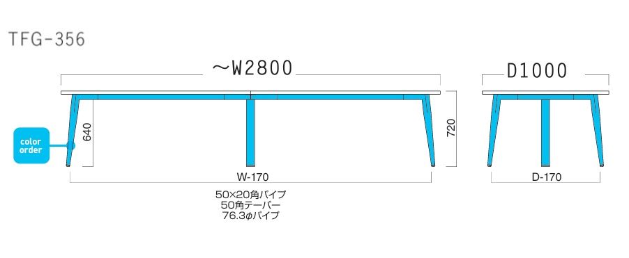 TFGー356 (5) ~W2800×1000 天板色4色 脚部色11色