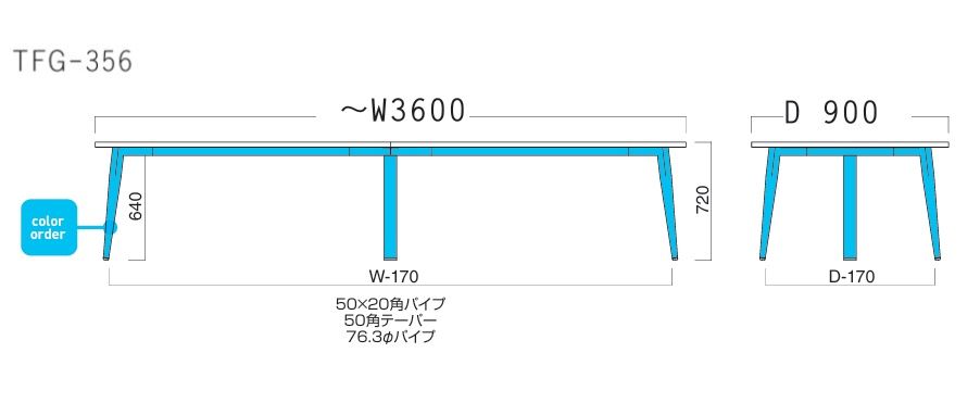 TFGー356 (7) ~W3600×900 天板色4色 脚部色11色