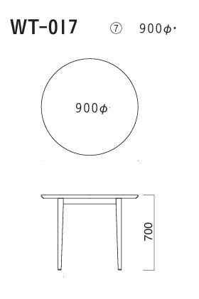 WT-017 (7) 900φ 天板メラミン化粧板 木部塗装色3色より選択