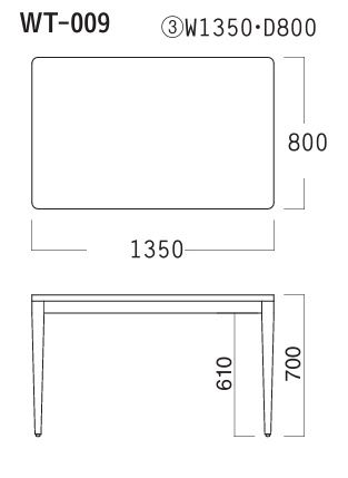 WT-009 (3) W1350×D800天板メラミン化粧板 塗装色2色より選択