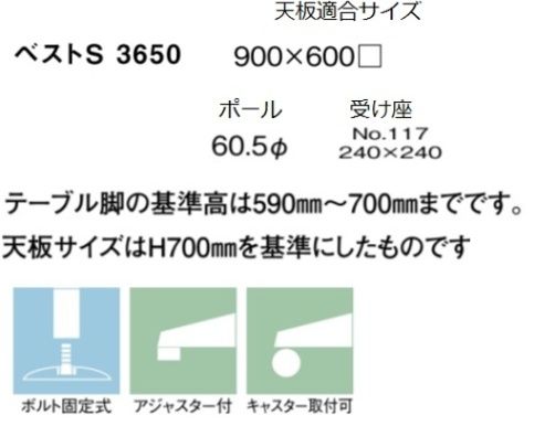 ベストS3650 ショットクローム塗装パイプ 適合天板サイズ900×600