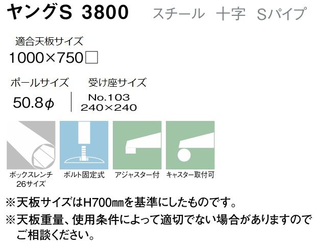 ヤングS3800 スチール クロ 粉体塗装 適合天板サイズ1000×750