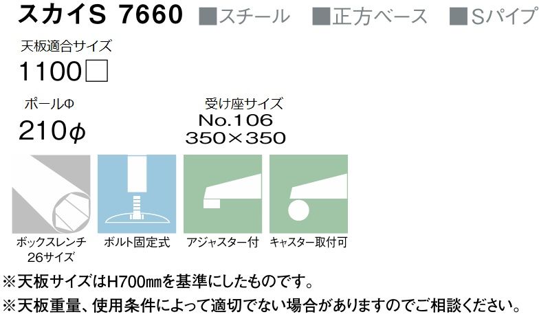 スカイS7660 ポールサイズ210φ 塗装6色 適合天板サイス(1200角)
