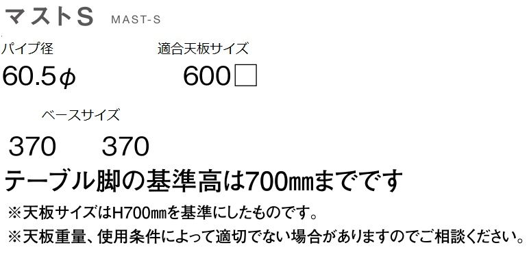 マストS7370 ポール60,5φ シビーベース、ポール粉体 適合天板600角