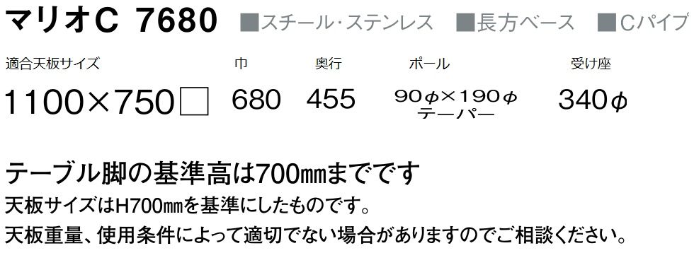 マリオC7680 黒粉体塗装 塗装パイプ 適合天板1100×750