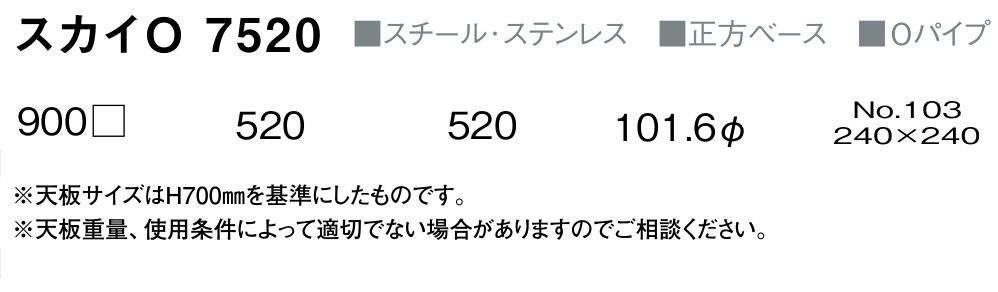 スカイO7520 101,6φ クローム 塗装ハカマ 適合天板900角