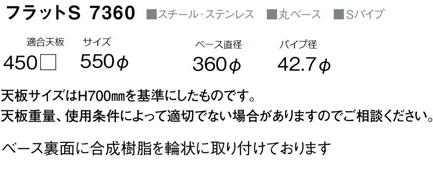 フラットS7360 ベースクロームメッキ ポール塗装 適合天板550丸・450角