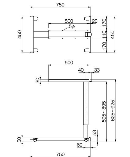 高さ:昇降ストーローク