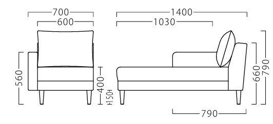 シェスタBRカウチ W1400 脚部の木部色2色 張地ランクAにての価格