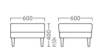 シェスタBRスツール 600角 脚部の木部色2色 張地ランクAにての価格