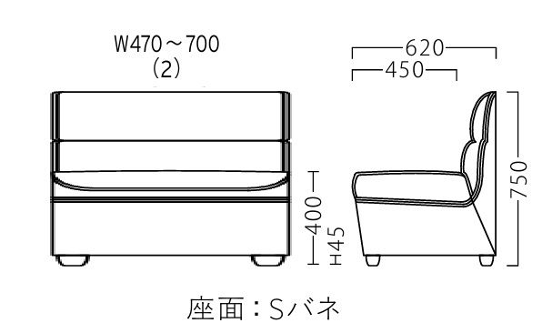 アイリス W470~700 2 ボックスソファー 表示価格はAランク