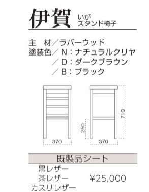 伊賀スタンド椅子 既製品 木部色3色より選択 張地限定 即納製品