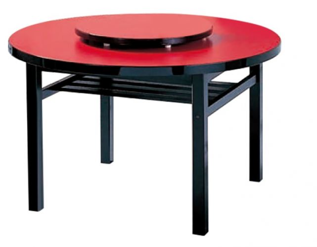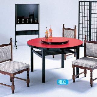 丸メラミン朱 中華テーブル 木製棚付脚 1200Φ