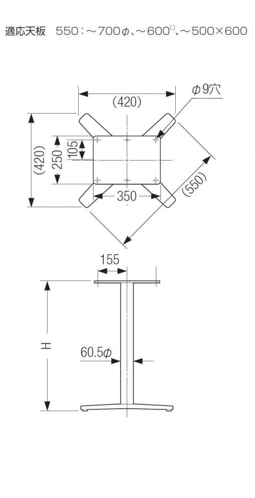 適応天板サイズは700の丸まで600の角までです。
