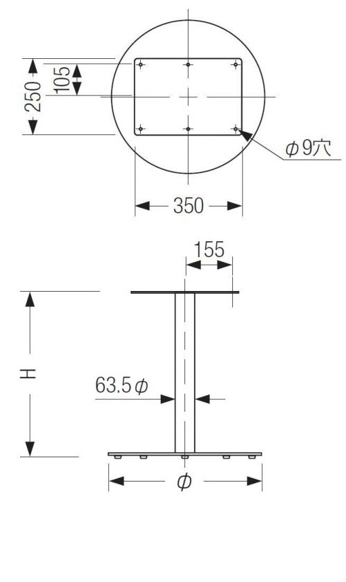 SSーSI500 適応天板サイズ900丸 ベースサイズ500丸