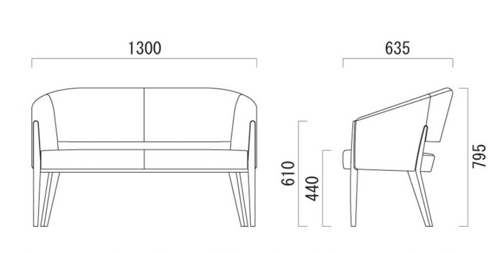 クレス P91 肘付き2人用 ウッド