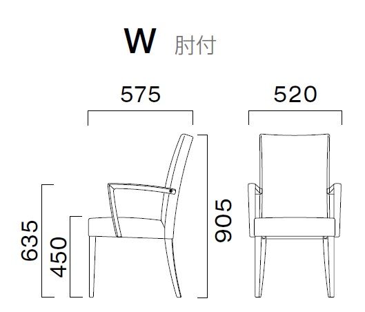 メルカW(肘付き) 木部色2色より選択 張地ランクZ