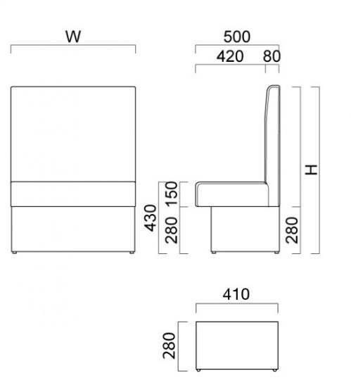 飲食店の壁面に取り付けのベンチタイプの