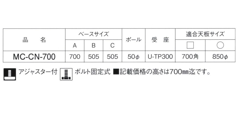 MC-CN-700・11 適合天板サイズ700角まで・850Φまで