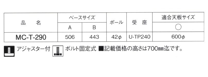 MC-T-290 14 適合天板サイズ丸のみ 600Φ