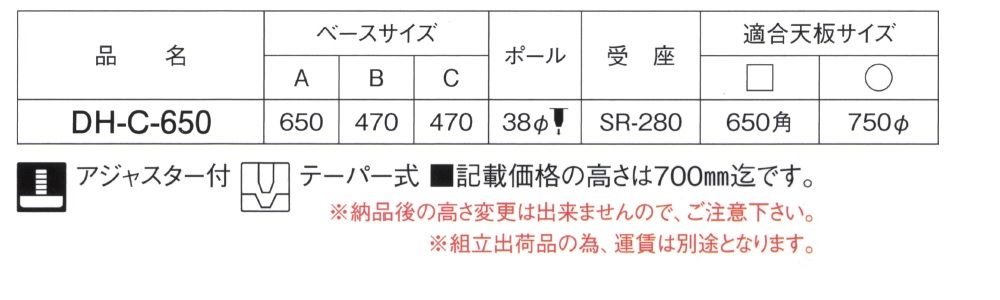 DH-C-650 88 適合天板サイズ 650角まで750Φまで