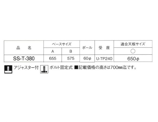 SS-T-380 14AM 適合天板サイズ丸のみ650Φまで