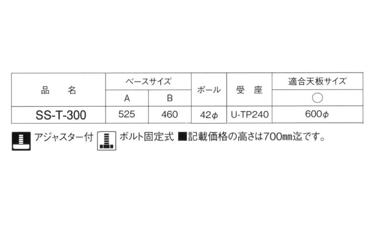 SS-T-300 14AM 適合天板サイズ丸のみ600Φまで