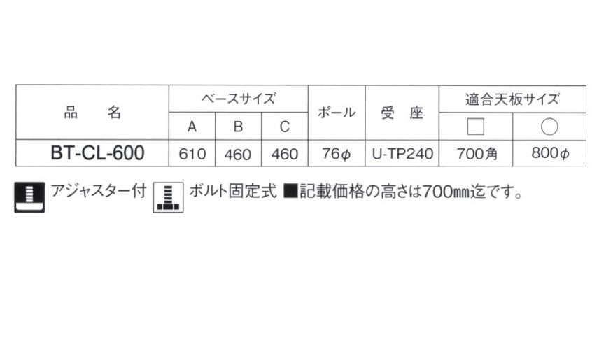 BT-CL-600 11 適合天板サイズ 700角まで・800Φまで