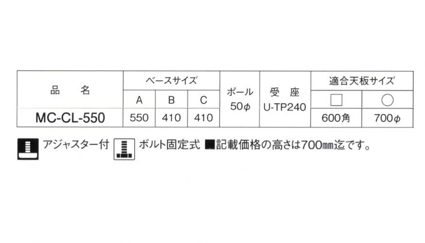 MC-CL-550 14 適合天板サイズ550角まで・650Φまで