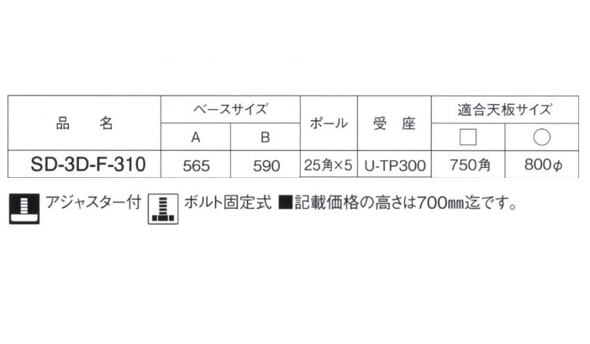 SD-3D-F-310 88適合天板サイズ750角まで800Φまで