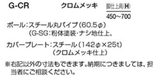 G-CR テーブル用固定脚 クロームメッキ H450~700まで指定