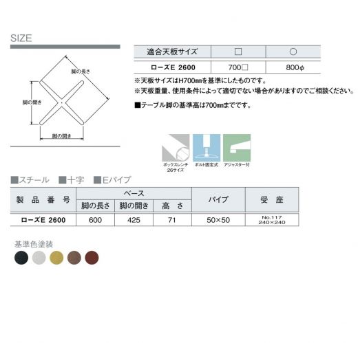 ローズE2600 適合天板サイズ700角まで800丸まで