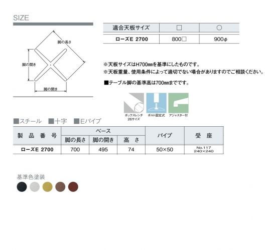 ローズE2700適合天板サイズ800角まで900丸まで