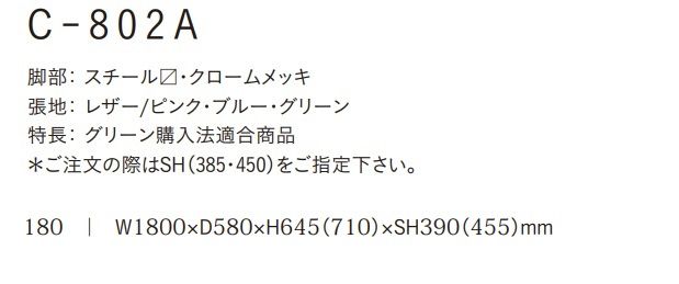 Cー802 A 180 ベンチ 張地色3色より選定 座面高2種類
