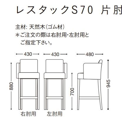 レスタックS70 片肘 木部色2色より選択 張地Aランク色より選択