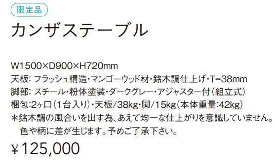 カンザステーブル W1500×D900×H720 フラッシュ構造