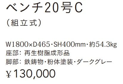 ベンチ20号 C 背、座部分再生樹脂成型 組立式 脚部鋳物 ダークグレー