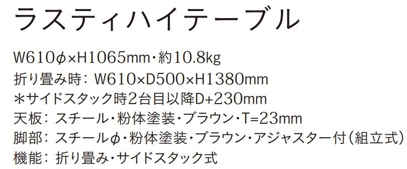 ラスティハイテーブル 610φ×H1065×t23 サイドスタック