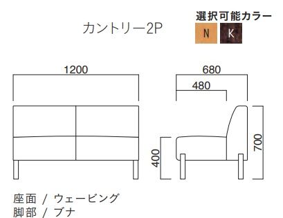 カントリー 2P 木部色2色より選択 張地ランクAにての価格
