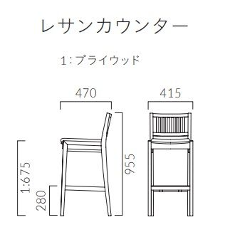 レサン カウンターチェア 木部色2色より選択 プライウッドタイプ