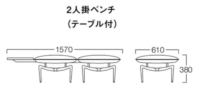 リンクベンチ2人掛けLAL500(テーブル付き) 本革(2色より選択)
