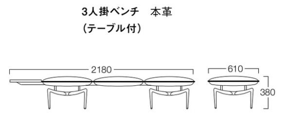 リンクベンチ3人掛けLAL600(テーブル付き) 本革(2色より選択)